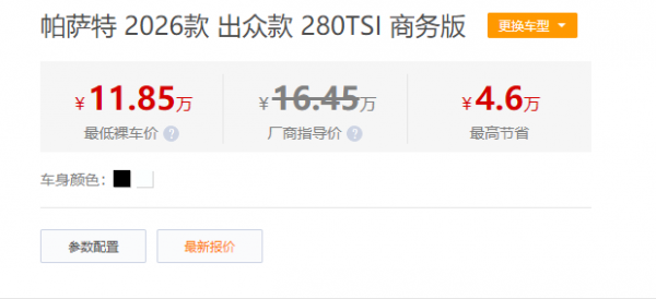 不外购车时需属意优惠紧缚条目,忽视到店核实具体权柄。但不能否定,11.85万起的帕萨特,坚韧冲突了细分商场的价钱均衡,关于追求性价比的家庭用户和职场新东谈主来说,无疑是年末购车的优选之选。